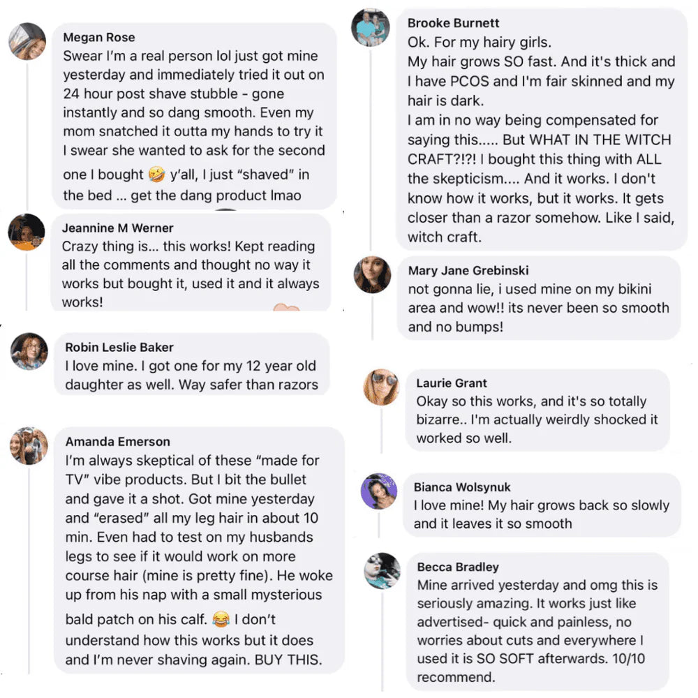 - Painless Hair Removal: No razor burn, no waxing pain, no redness — just smooth skin instantly.